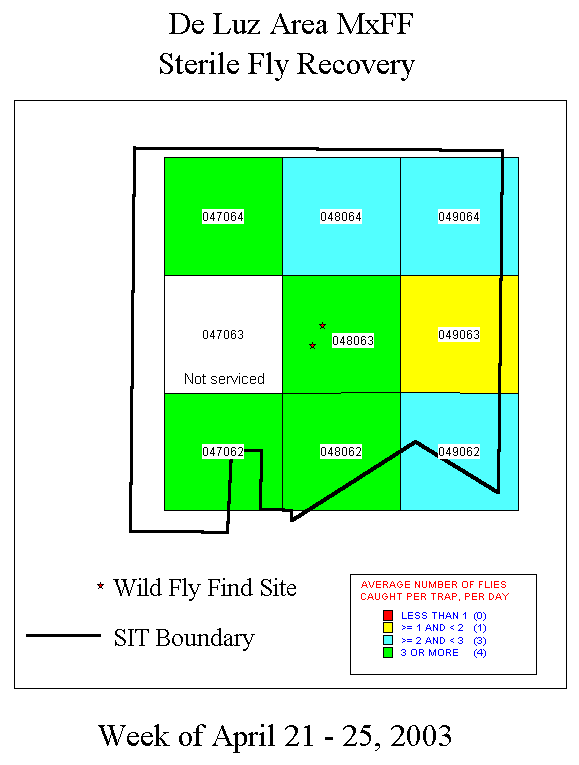 Note: Sterile release in the De Luz eradication area began on April 15.